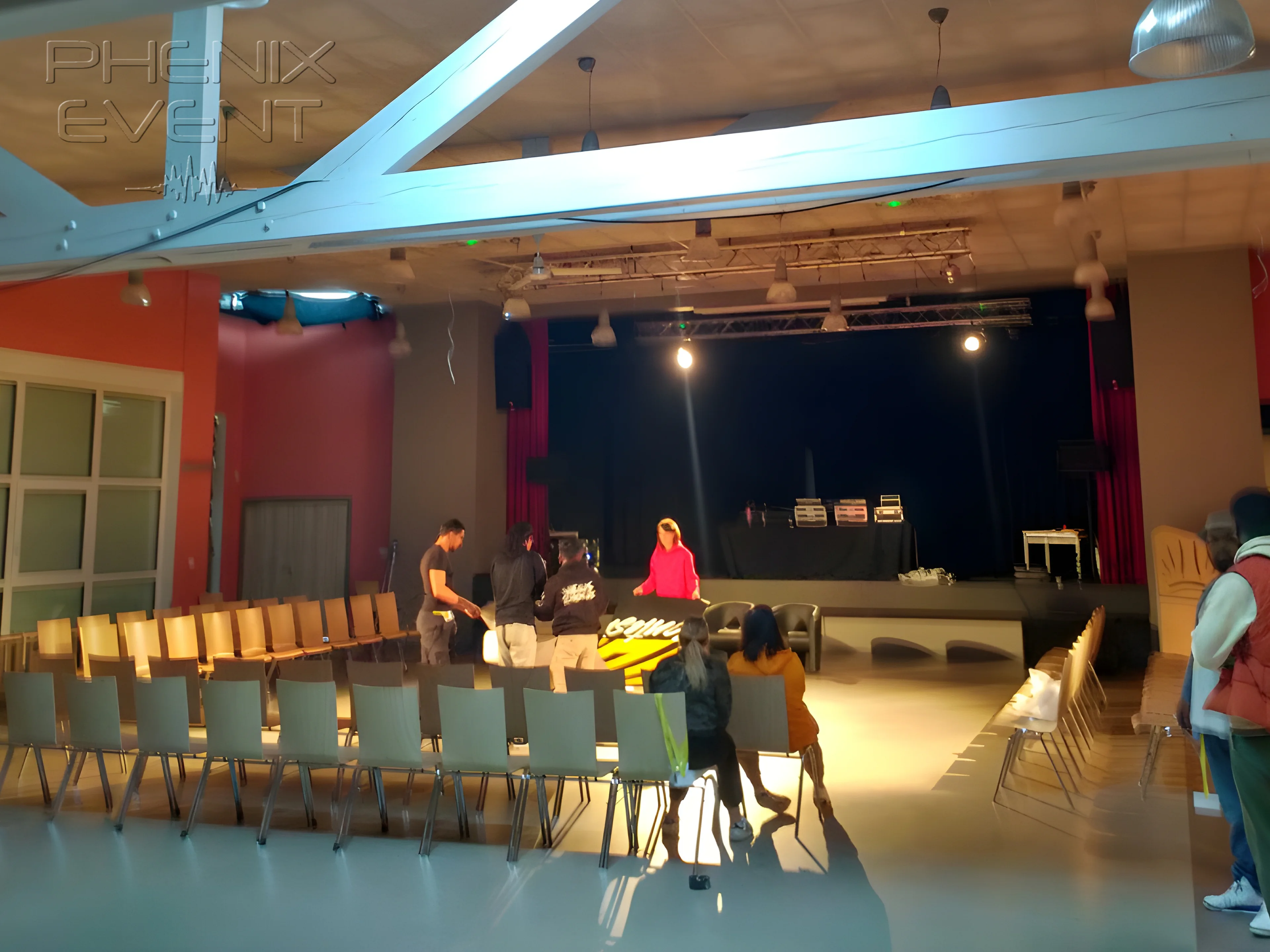 Effectivement, niveau sonorisation, la salle est déjà équipée mais Peck ne souhaite pas faire dans la demi-mesure : il a besoin d’un son qui cogne, qui balance, qui enveloppe les danseurs sans faiblir. Il connaît le matériel estampillé Phenix Event, donc il n’hésite pas à faire appel, une fois de plus, à nos services. Il nous fait confiance.