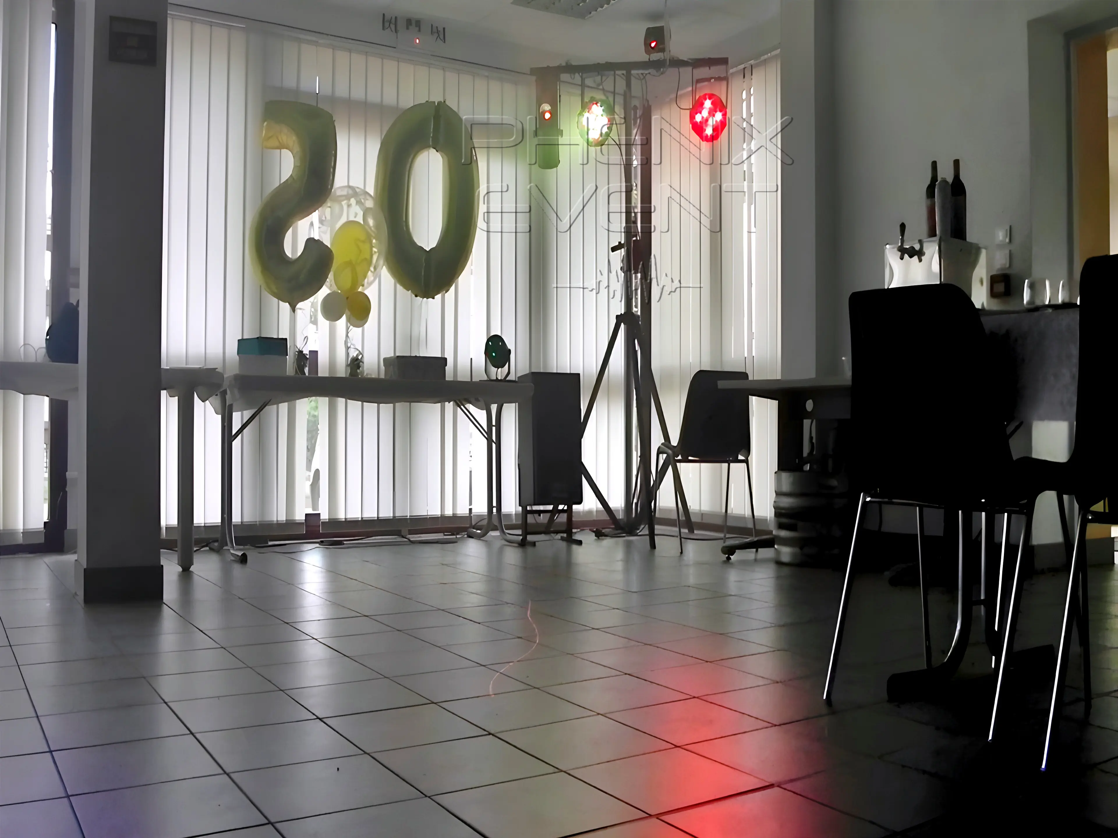 Contrainte : le plafond bas limite vraiment la hauteur des effets lumineux, mais on fait au mieux avec ce que la salle offre… Si on avait eu 5 min, nous aurions éventualisé l’hypothèse d’ouvrir un chantier et de le réhausser d’un bon mètre et demi, mais on a oublié la bétonnière et le schpeiss« Le béton ». Terme extrait de l’inimitable patois mosellan. au dépôt… :/ Si on avait su…. Qu’importe, une fois mis en route, l’ambiance est au rendez-vous et le système est prêt à pepser »« Dynamiser ». Vocable néologique issu de notre extraordinaire champ lexical du renouveau. la piste de danse et ancrer cette fête d’anniversaire dans les esprits.