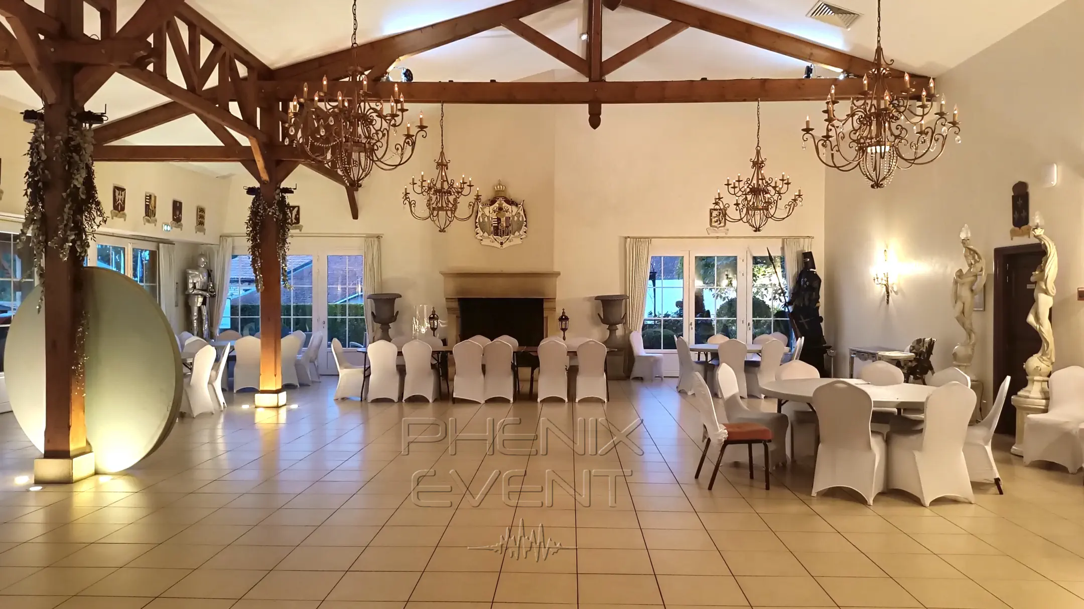 Par contre, niveau déco, c’est propre. Cette dernière est très soignée et on peut retrouver sur les murs des armoireries médiévales et dans chaque coin de la pièce, des chevaliers en armure. Un décor qui peut sembler certes atypique pour une fête, mais qui a son charme. En tout cas, à nous, il nous plaît beaucoup !