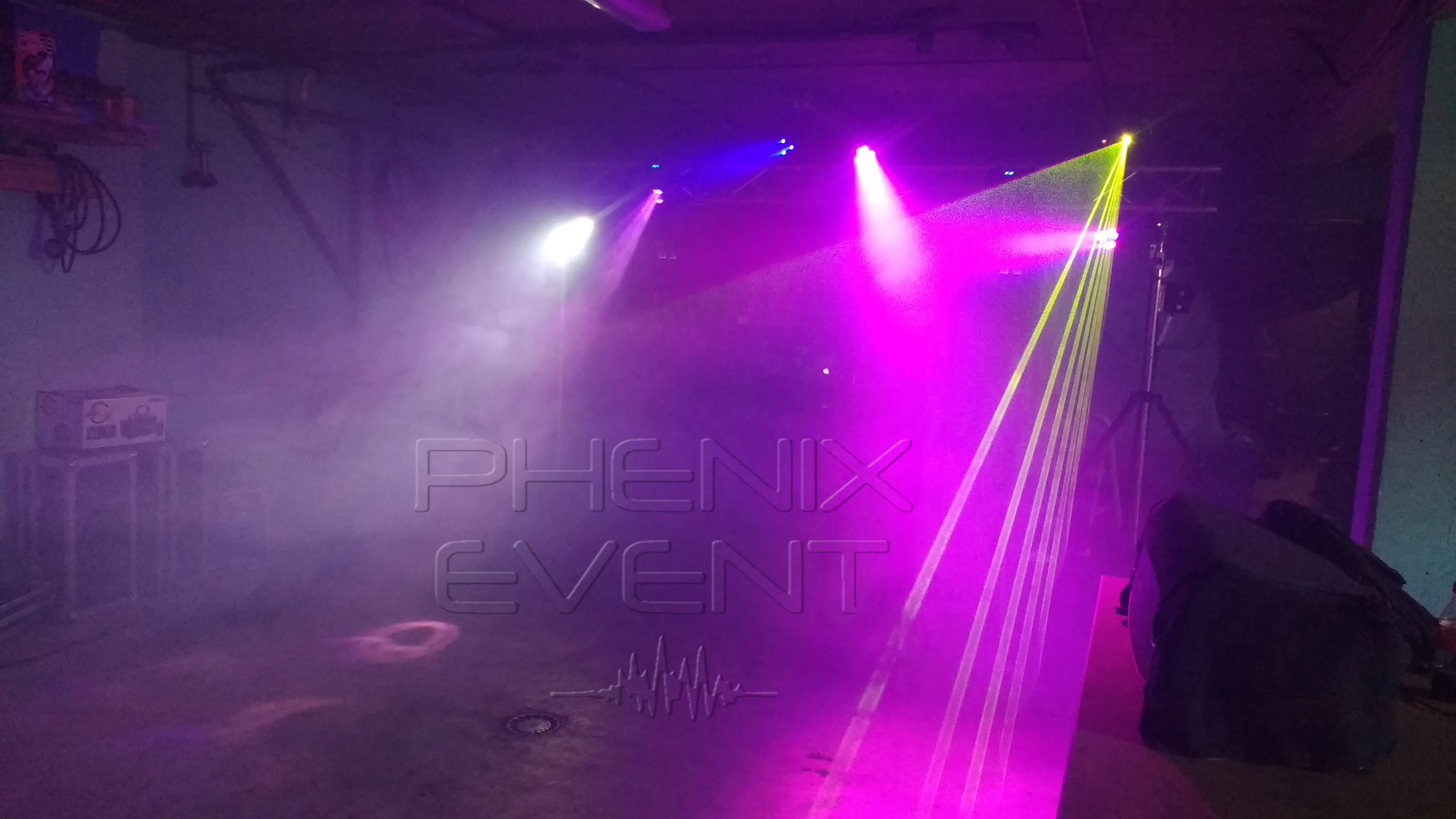 - Solution de secours pour sauver la fête : sono et lumières sur pont alu finalement installés dans le garage ! (vous y êtes ✅)