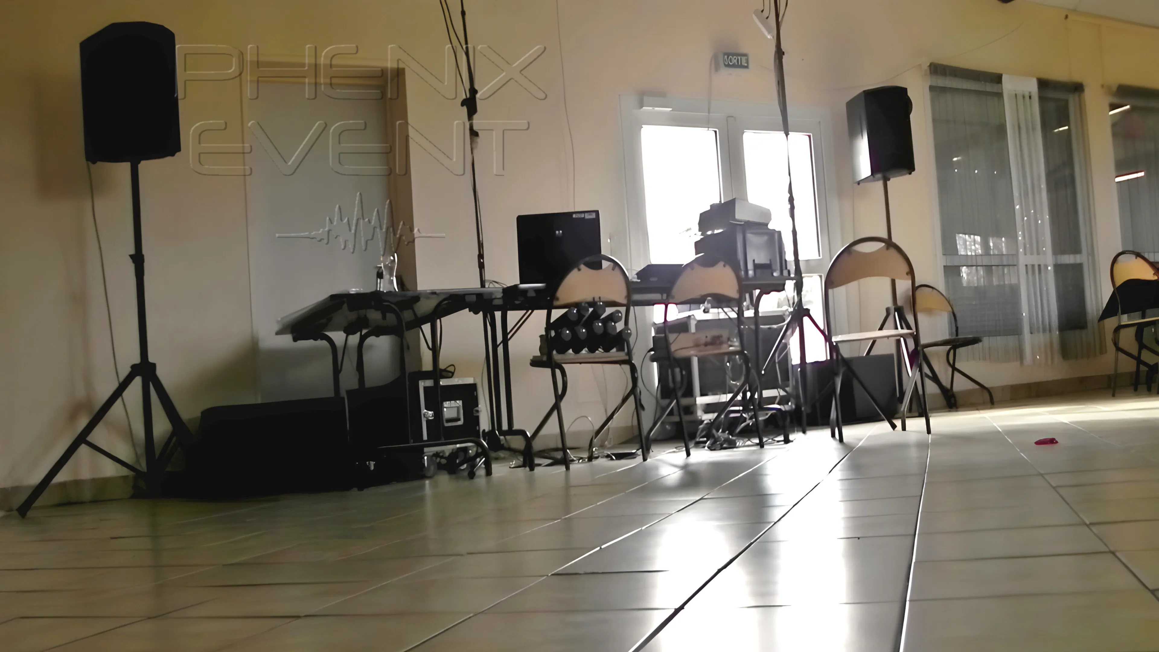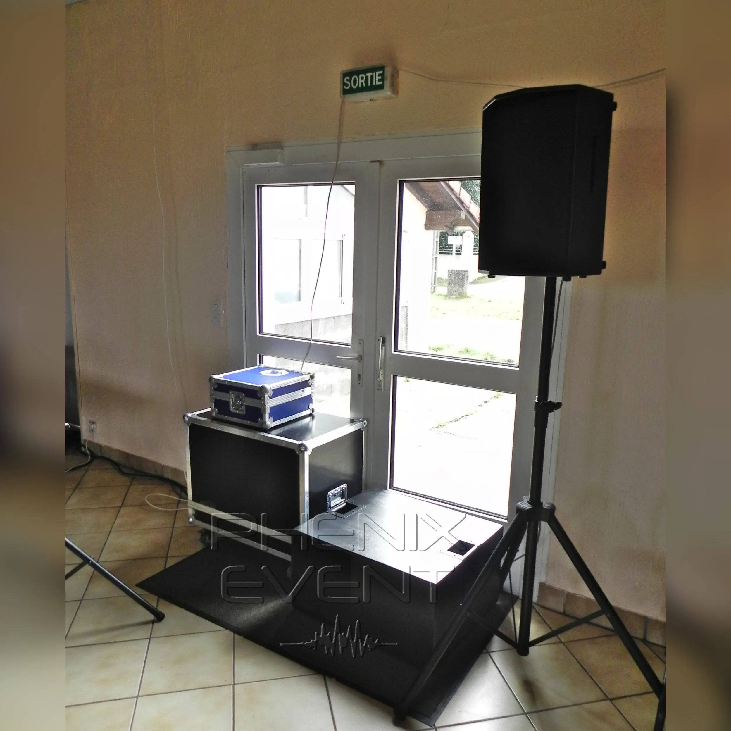 À mon arrivée, accueil chaleureux. Olivier est encore en train d’installer ses jeux de lumière maison mais le coin DJ est prêt. Une enceinte à gauche, l’autre à droite, les subs juste dessous, le rack glissé sous la régie. Le Pack Sono pro 1500w 10X212M est opérationnel. Enfin, presque.