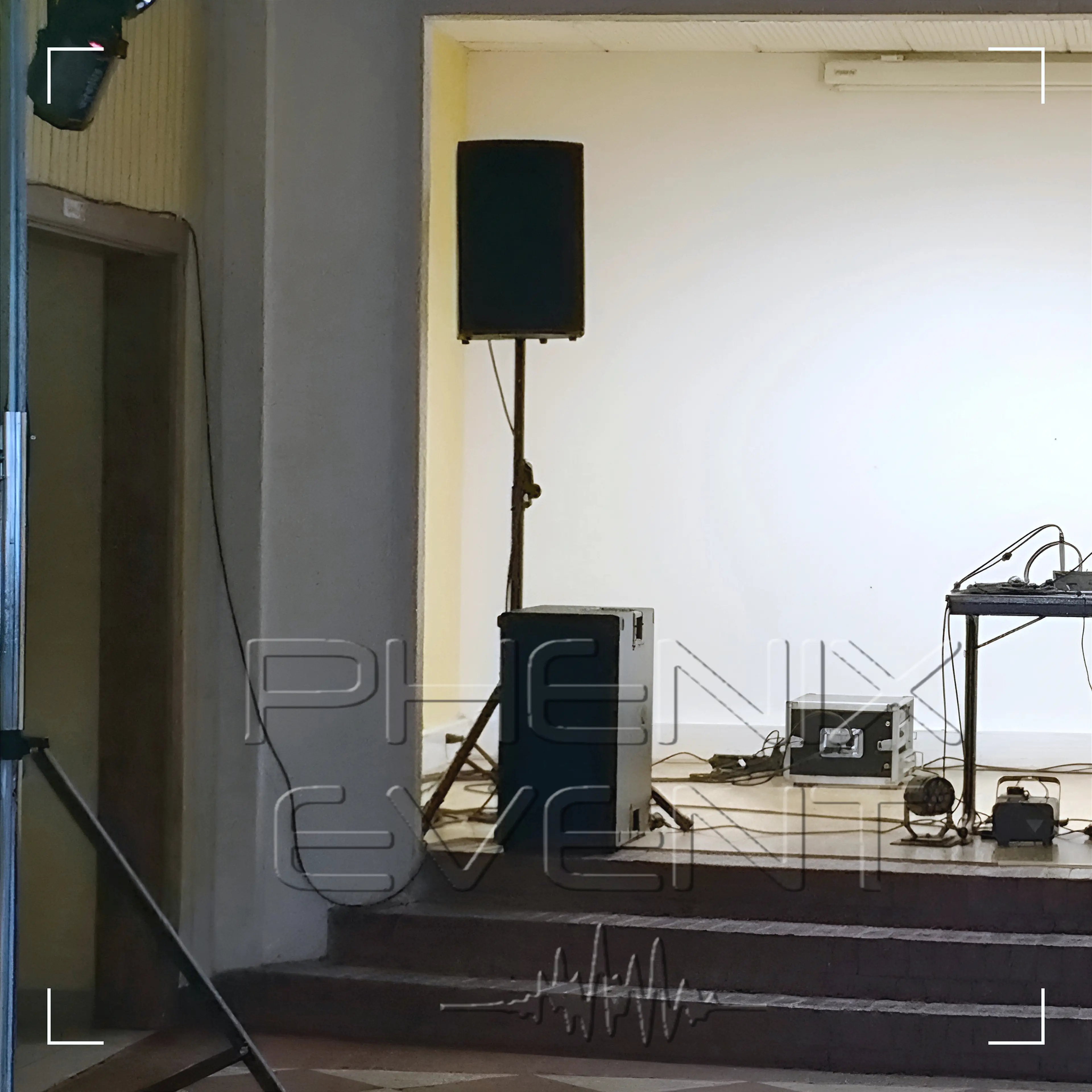 Maxime à déjà placé et centré une table sur la scénette de la salle pour y placer son ordinateur ainsi que la table de mixage comme annoncé plus tôt au téléphone.