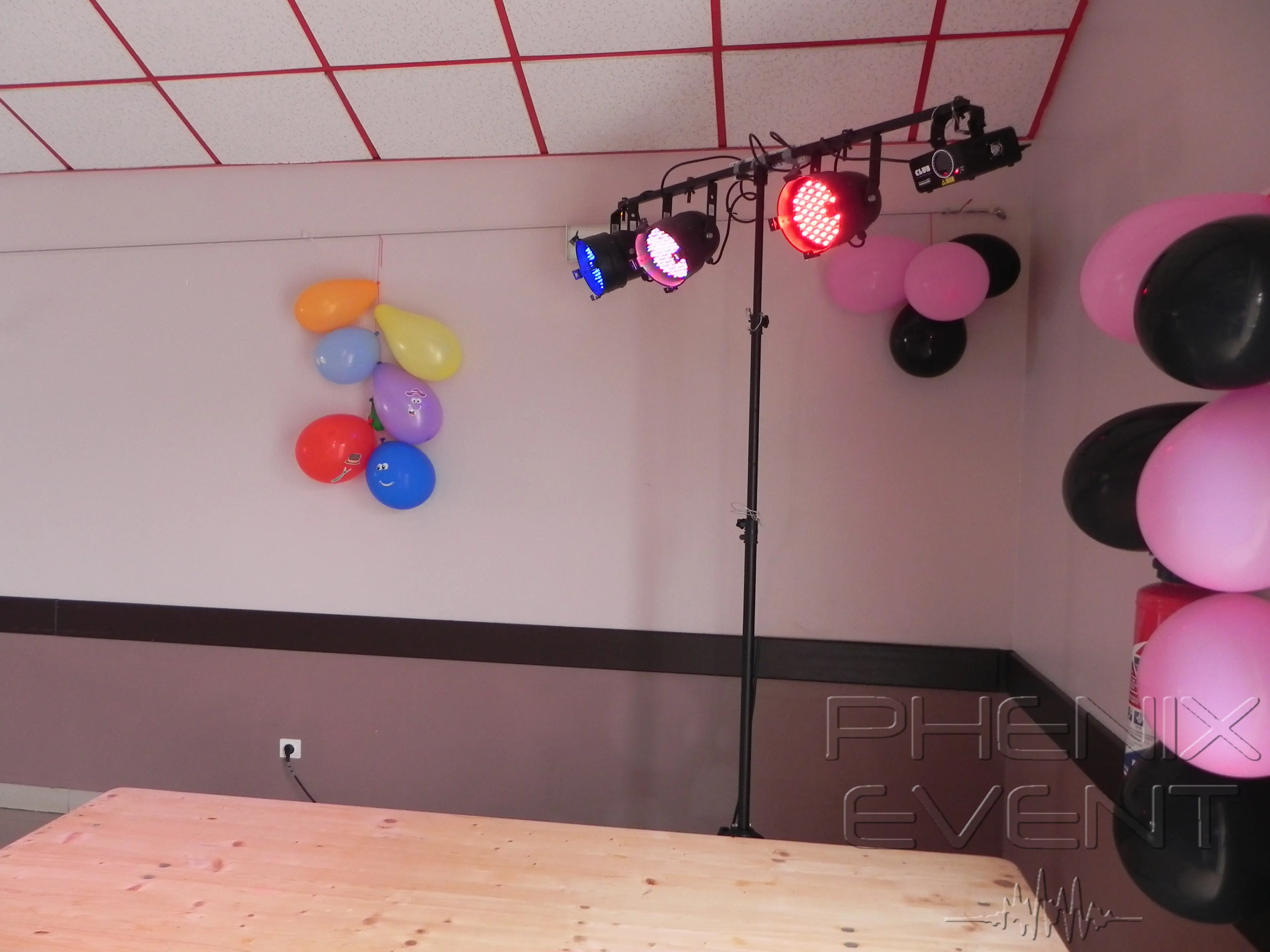 Passons aux lumières. Le pack Projecteurs 2 entre en scène : un trépied avec trois spots LED est installé près d’une enceinte, l’autre muni de l’effet laser multicolore, dans un coin de la salle pour une couverture optimale (et pour ne pas gêner). Une fois allumés, les spots LED et le laser transforment l’espace en une véritable piste de fête. Et la lumière fut !