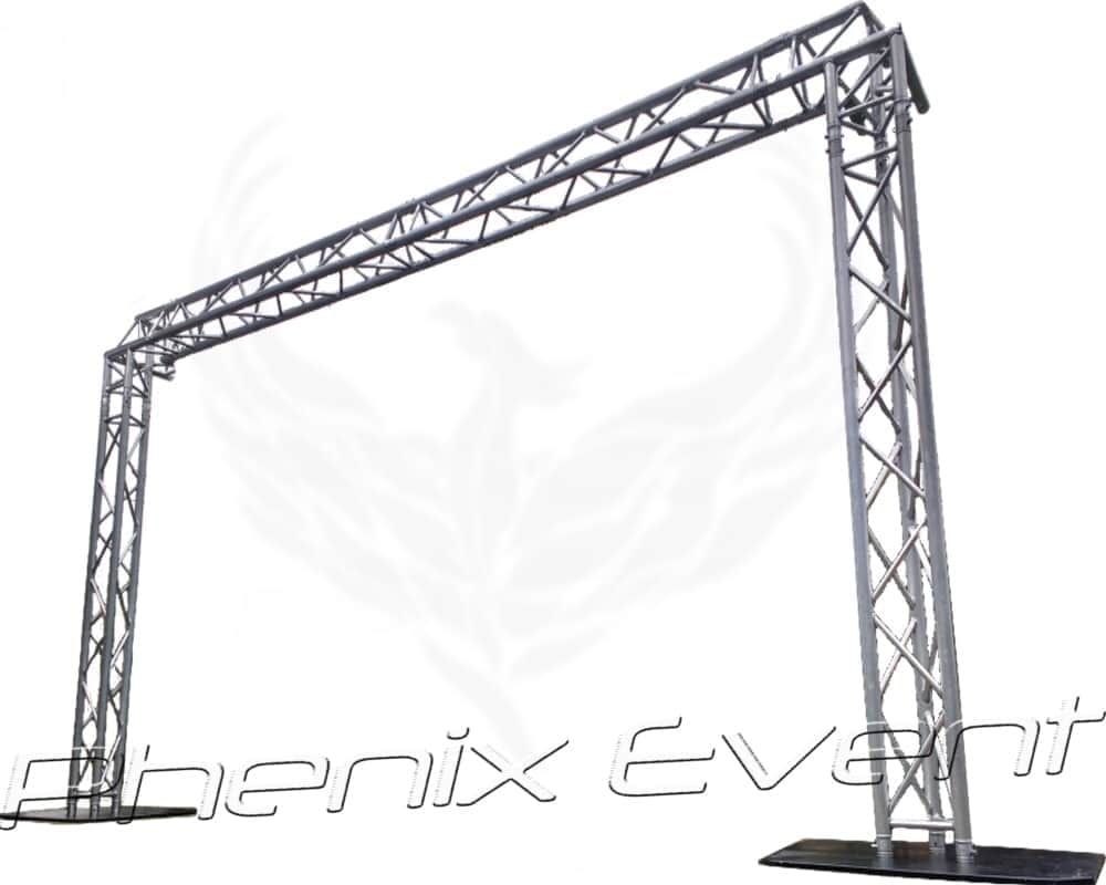 Arche en aluminium composée de traverses triangulaires de 2 mètres et d’angles 90 degrés.