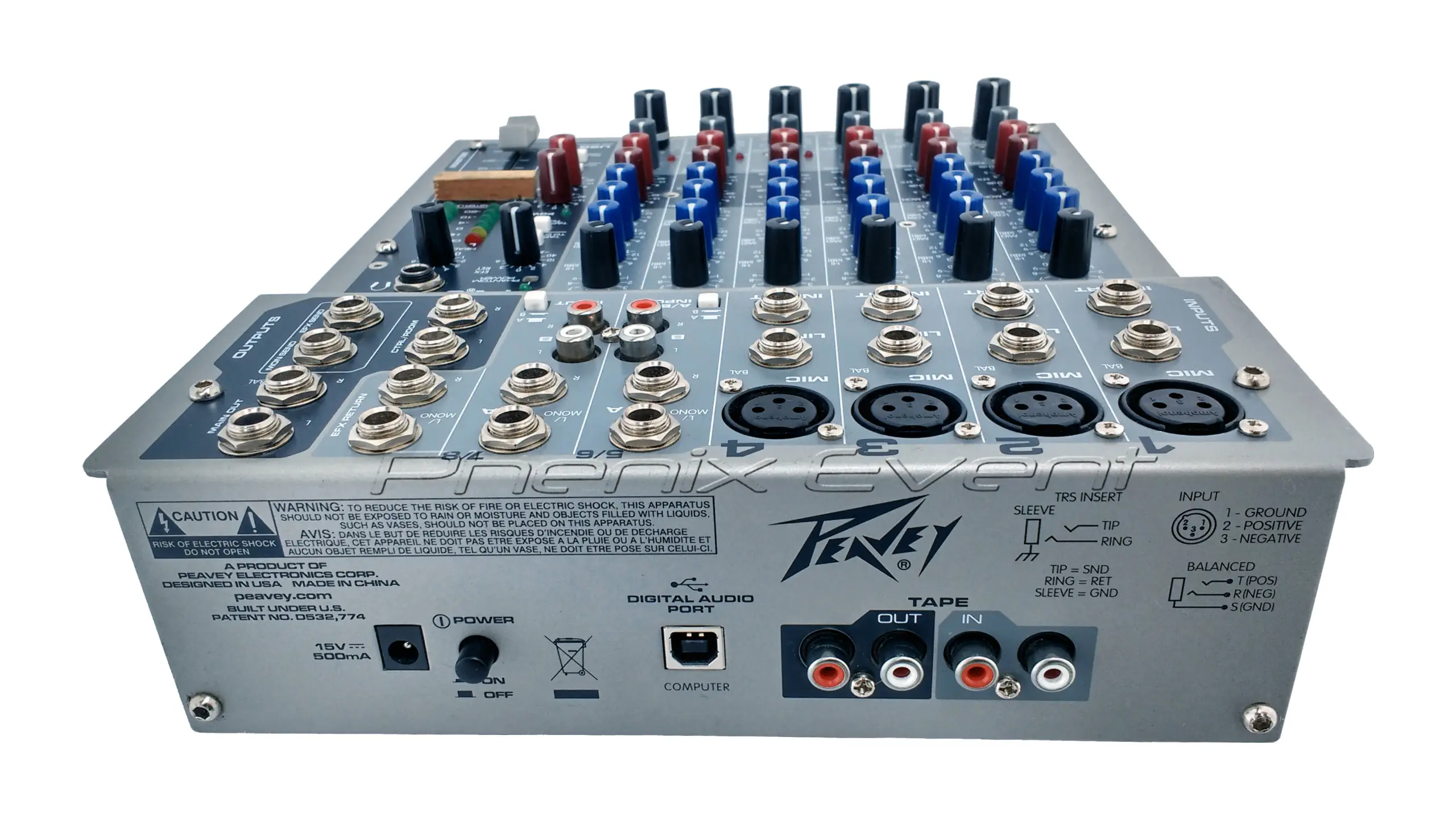 Caractéristiques de la table de mixage Peavey PV8 USB