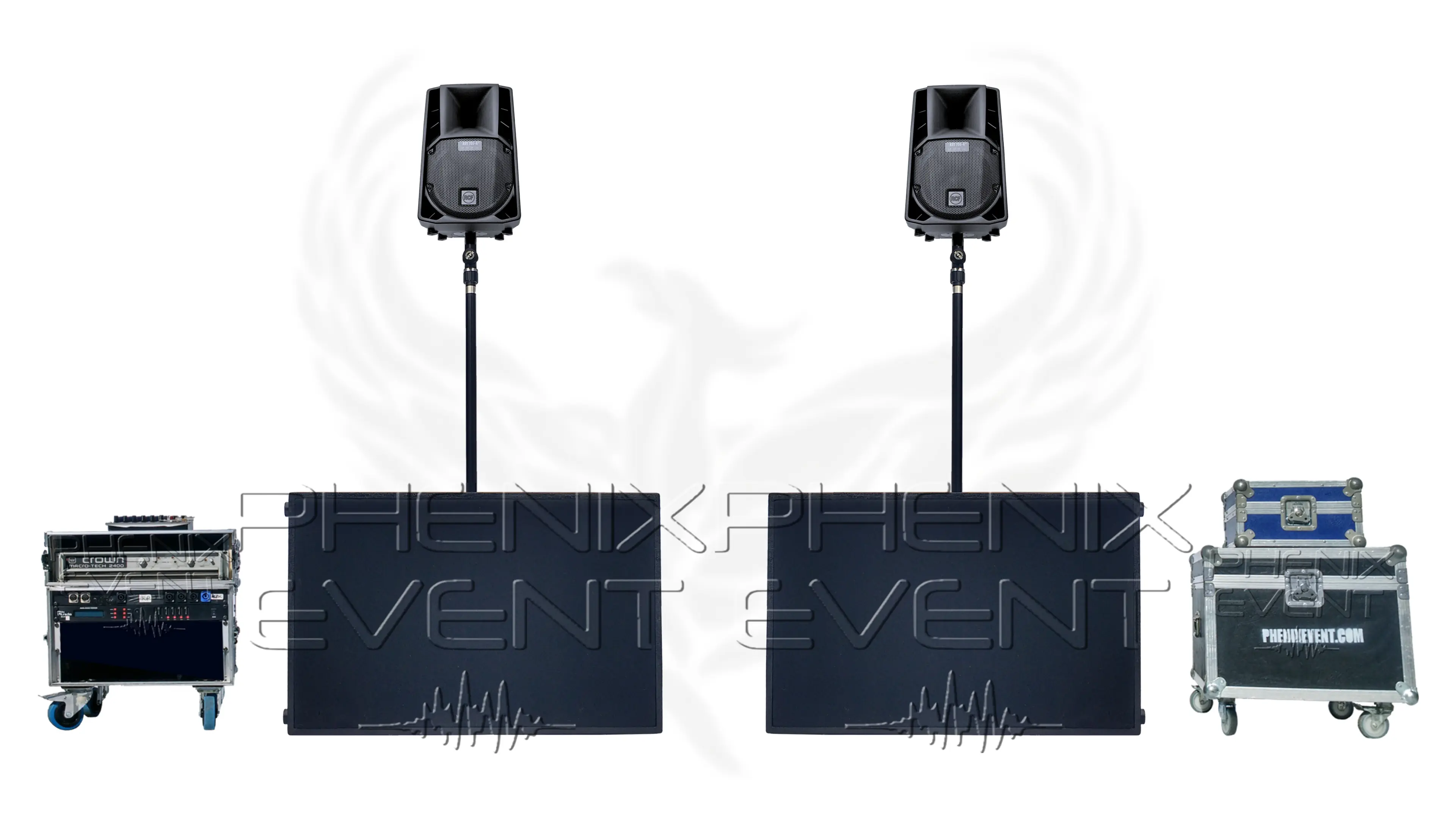 - 2 Caissons de basses 1200w, 18 pouces, haut-rendement
